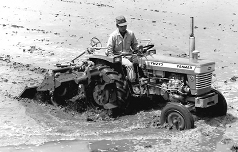 The first Yanmar tractor is launched. From the beginning, Yanmar tractors like the 23 horsepower Model YM273 use Yanmar water-cooled diesel engines.